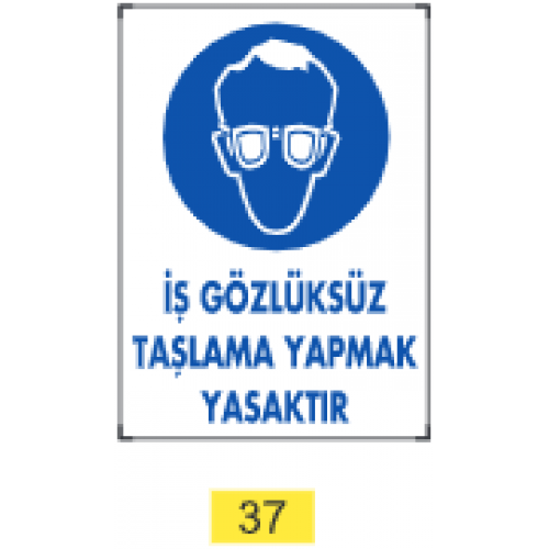 İş Gözlüksüz Taşlama Yapmak Yasaktır / Uyarı - İkaz Levhası