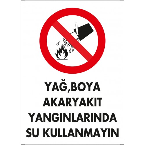 Yağ,Boya Akaryakıt Yangınlarında Su Kullanmayın Uyarı - İkaz Levhası