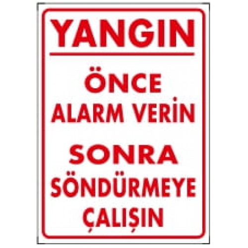 Yangın Önce Alarm Verin Sonra Söndürmeye Çalışın Uyarı - İkaz Levhası