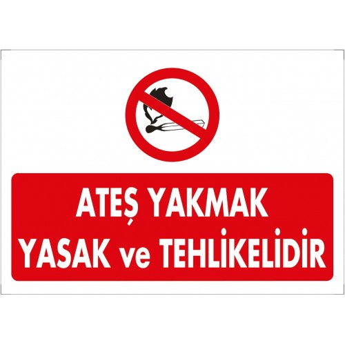 Ateş Yakmak Yasak ve Tehlikelidir Uyarı - İkaz Levhası