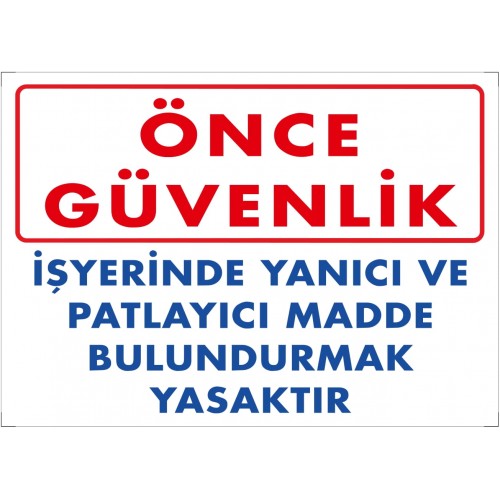 Önce Güvenlik İşyerinde Yanıcı Ve Patlayıcı Madde Bulundurmak Yasaktır Uyarı - İkaz Levhası