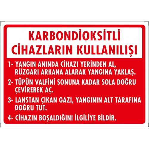 Karbondioksitli Cihazların Kullanılışı Uyarı - İkaz Levhası