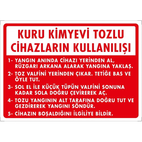 Kuru Kimyevi Cihazların Kullanılışı Uyarı - İkaz Levhası