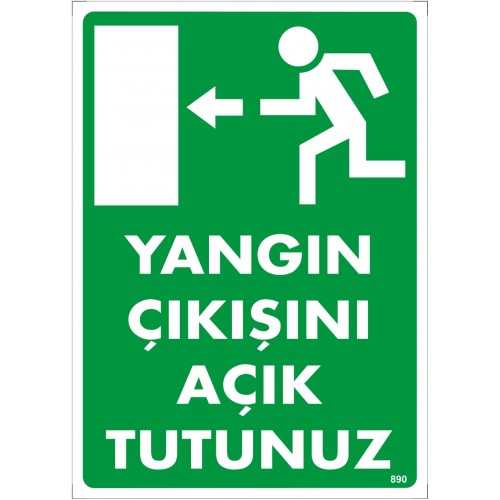 Yangın Çıkışını Açık Tutunuz (sol )Uyarı - İkaz Levhası