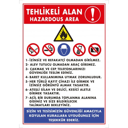 Tehlikeli Alan Hazardous Area / Uyarı - İkaz Levhası