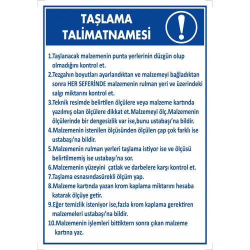 Taşlama Talimatnamesi / Uyarı - İkaz Levhası